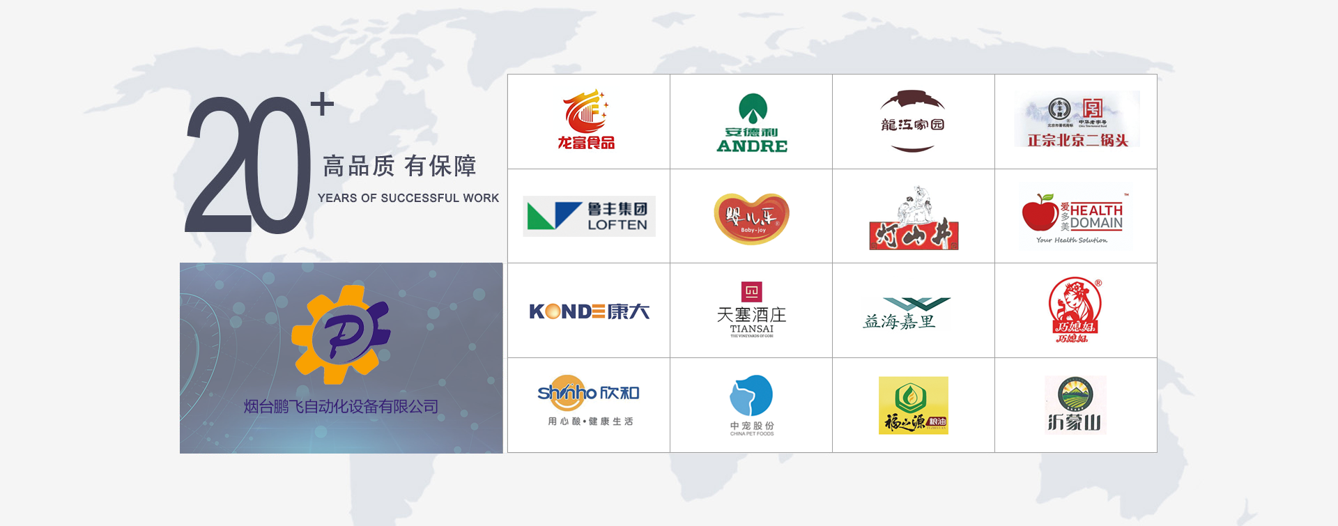 煙臺鵬飛自動化設(shè)備有限公司 坐落于美麗的海濱城市--煙臺,是一家專注于中低速貼標(biāo)機(jī)、食用油灌裝生產(chǎn)線等設(shè)備的研發(fā)、設(shè)計(jì)、生產(chǎn)、銷售、售后服務(wù)于一體的設(shè)備制造商。長期以來,建立了一套完整的服務(wù)體系,公司擁有先進(jìn)的生產(chǎn)技術(shù),精湛的生產(chǎn)工藝,嚴(yán)格的質(zhì)量管理形成了強(qiáng)大的競爭優(yōu)勢,其產(chǎn)品暢銷全國十幾個(gè)省、市、自治區(qū),并遠(yuǎn)銷中亞五國埃及、緬甸、新加坡、智利等國家。